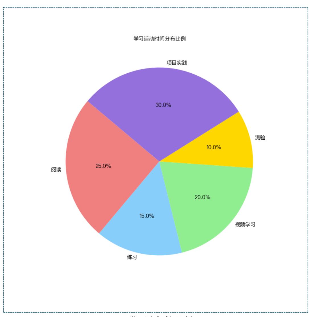 - 此比例分析有助于教育者了解学生在学习活动中的时间分配,从而在教学设计中平衡不 同活动类型。