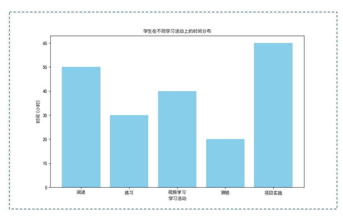 - 从柱状图可以看出,学生在项目实践上的时间投入最多,达到 60 小时,远高于其他活动。